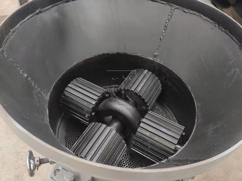 When the roller rotates, the material scattered on the template is compacted into the small holes of the template. As the roller repeatedly passes through the new material, the material continuously penetrates downwards through the template, forming columnar particles. When the extruded particles reach a certain length, they are cut into columnar particles by a rotary cutter.